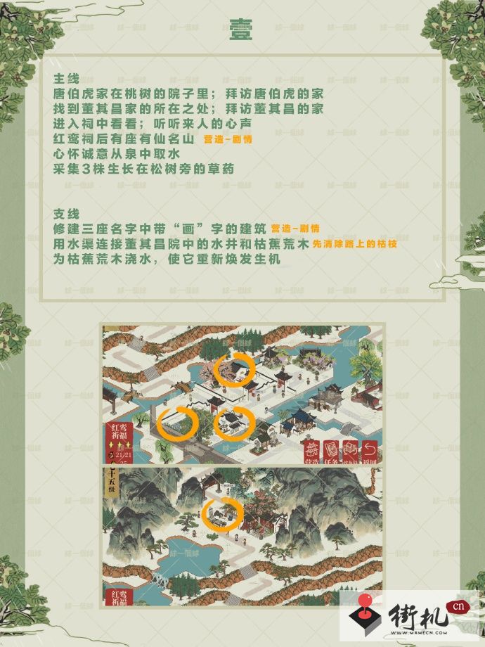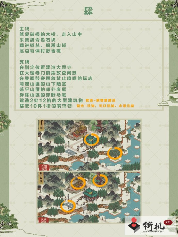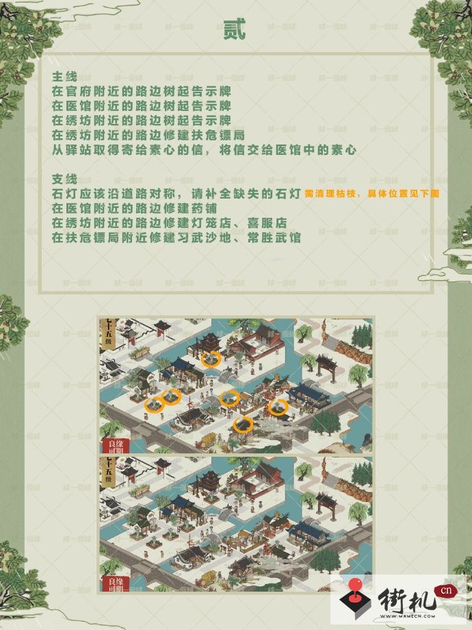 补全石灯:需要先清除占用位置的枯枝,然后按照我圈出的位置建造即可(有个被常胜武馆挡住了)