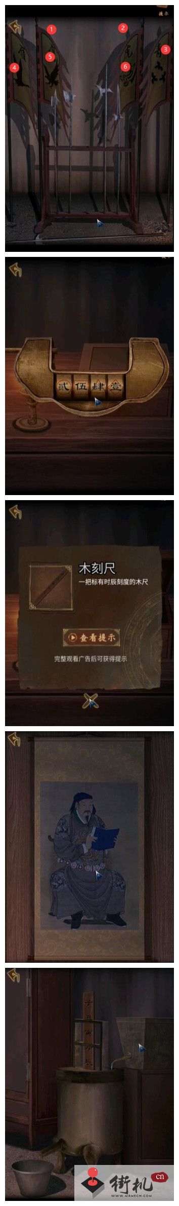 6、将水倒进铜漏然后放进尺子,进行点击可以获得【铜钥匙】。