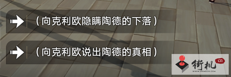 2,之后选择【向克利欧隐瞒陶德的下落】,可以获得成就岔路新生