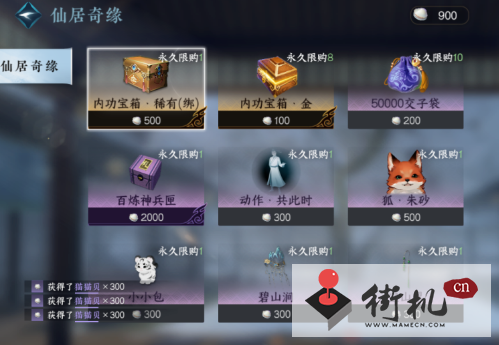 兑换商店:使用猫猫币在兑换商店可兑换稀有内功,交子,73百炼补齐匣,朱砂宠物,动作·共此时,小小包等外观奖励