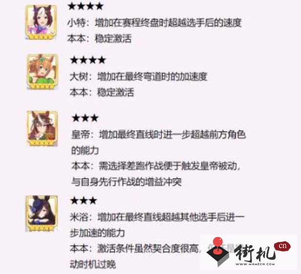 6、其他的角色例如好歌剧、目白麦昆、超级小海湾、东海帝王等都属于泛用相性好的种马,玩家们可以根据自己的情况来选择搭配。