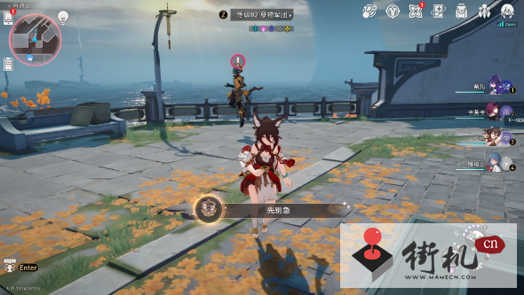 2、玩家可以来到丹鼎司下图红圈处(当然也可以随便找一个敌人玩,但不建议去扎人堆);