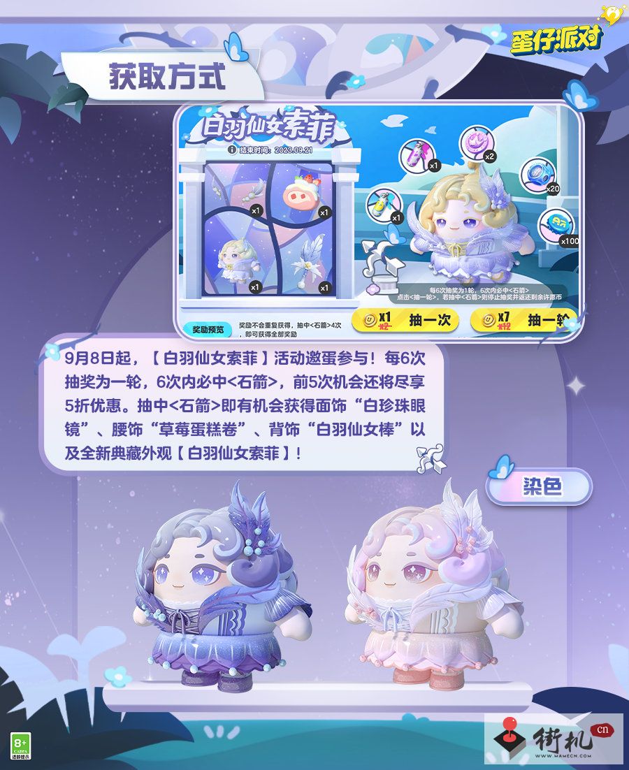 蛋仔派对白羽仙女索菲怎么得?不少玩家相中了这个白羽仙女索菲,她将会在9月8日上线,不少玩家不清楚具体的获取方法,那么就随小编了解一下吧。
