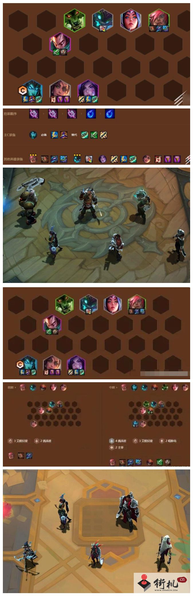 1、前期装备先给前排,搭配:两主宰四挑战三艾欧,可以平稳发育;