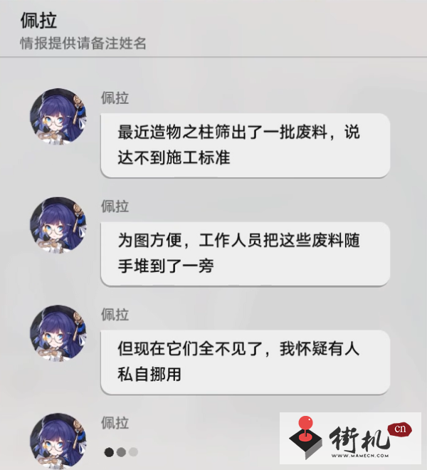 在搜集完4处箱子的废料后,我们会收到佩拉的短信,会问我们有没有消息。