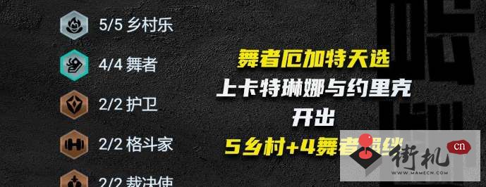 2、羁绊构成:5乡村音乐 4舞者 2护卫 2格斗家 2裁决使;