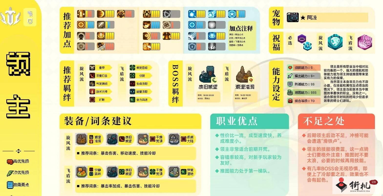 元气骑士前传领主这个职业不少玩家都选择了,但是对于领主的加点装备及宠物搭配没有一个合适的方案,小编带来了一些推荐,有详细的优缺点解析,玩家可以参考一下。