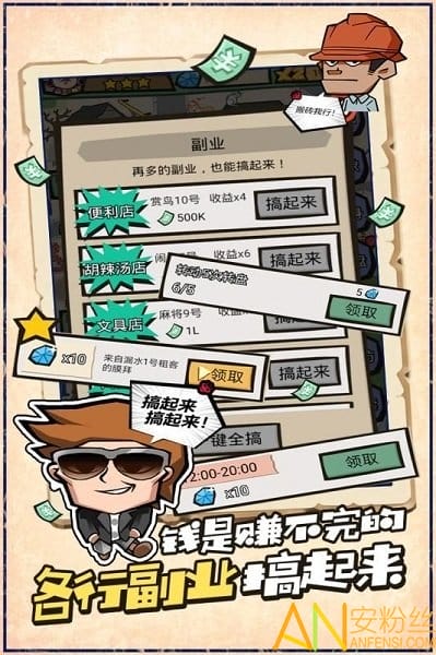 天苍苍,野茫茫,天天都为赚钱忙? 盆友,还在为每个月勒紧裤带过日子而难受吗? 要不考虑下加入咱们的收租大队,一手坐拥房产,两手买房卖房! 收租?你第一时间肯定觉得不符合您高贵的身份!! 放心啦,作为一个在大街小巷晃悠的职业,随时随地切换形象肯定是少不了的啦, 而且咻一声~就能召唤跟屁虫噢,走到哪跟到哪,分身buff收益upupup~ 闲来没事日常再搞点儿小副业,