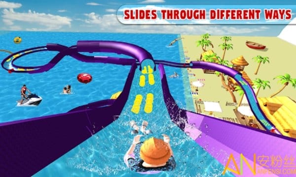 水滑梯冒险是一个拥有很多乐趣的水上乐园游戏玩法。现实的水滑道在水中滑行公园狂躁在海滩上将为您提供令人难以置信的海景。并且在锋利弯曲的转弯中进行真正的特技将更加激情和冒险。这里是快乐的土地公园里最好的疯狂的水滑块,幻灯片是滑的,在夏天玩水滑和极端的特技。在滑行模拟器上进行上坡匆匆骑行,你可能会从最高的过山车风格幻灯片下降,所以要注意锐利和弯曲的转弯,同时做出极大的特技。