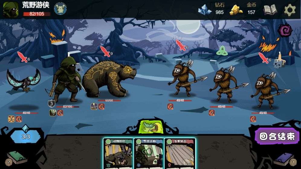 4、而且游戏注重与策略的选择而非单个人物的强度,所以及时碰到了有强力卡牌的敌人也不用担心。