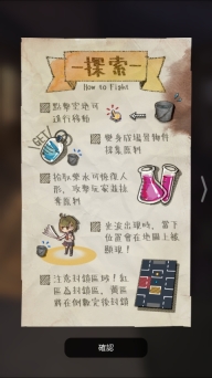 2、点击箭头仔细阅读探索规则,这里最主要的任务是拾取物品生存下去,每种物品都有自己特定的作用,比如汤锅、热狗可以回复生命值,看完之后点击确定。