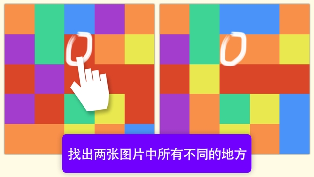 最强找茬是一款烧脑费眼的找茬游戏,在一群色块之中找到细微的不同之处,从一开始的简单到后面的魔鬼级别,游戏告诉我们很多时候是不能相信自己的眼睛的,完成前面的关卡可以为后面的提供更多的提示机会,不会就看看提示,可能就在显眼的地方,快来试试吧!