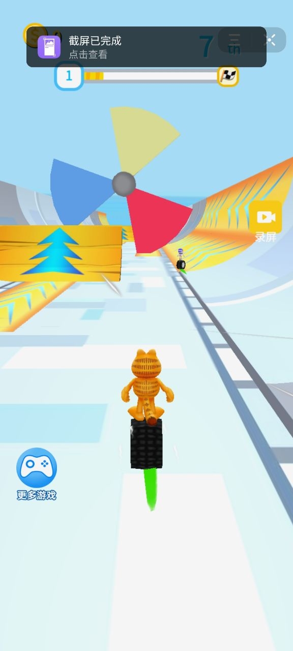3、动漫风情还原加菲猫神奇之旅,在无限延伸的通道里面不断加速随时准备完成这场冒险。