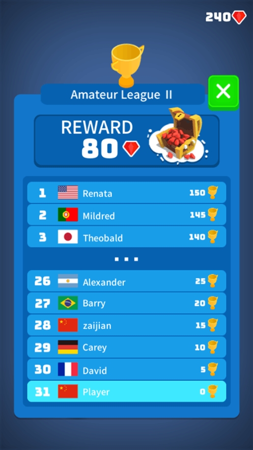 3、通过积分制的方式来决胜出最后的胜利者,让你充分的去享受整个精彩的过程。
