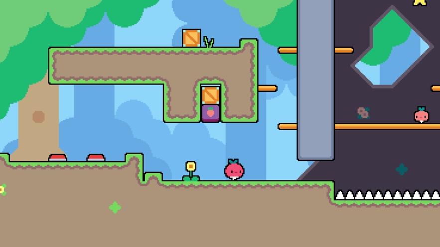 萝卜逃亡游戏(Dadish)是一款非常不错的横版闯关平台跳跃小游戏,你将会扮演一只萝卜,在各种地图上不断的跳跃探索,寻找打开密室的钥匙,失掉地图上的星星,你将会得到成长,更能够获得超级强大的特殊能力,注意千万不要触碰到了这些怪物,虽然他们傻愣愣的,但是有时候也会对你造成致命威胁。
