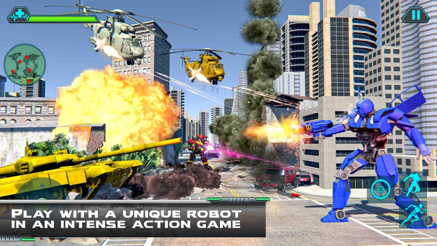 直升机变换坦克战争是一款射击战争类手机游戏,游戏中使用科幻的元素让整个画面变得更加的具有震撼感。玩家成为一名出色的机械驾驶员通过各种作战单位的变形完成战争,不同的单位有着不同的攻击方式,玩家可以自由的进行一个操控。