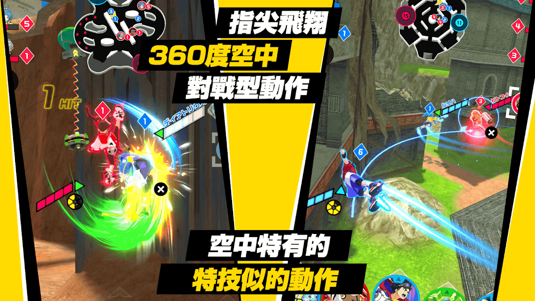 游戏是一款在你空中竞技PK的手游,当然他的竞技并不是战斗,而是利用自己的角色的技能以及玩家的操作在空中完成那些高难度的动作并收集足够多的水晶来获得高分。游戏是4人组队的玩法,在有限的3分钟内,那个队伍能拿到更多的水晶,哪边就会获胜哦。操作简单,但是释放技能的时机一定要把握好才可以完成那些精彩的空中动作!