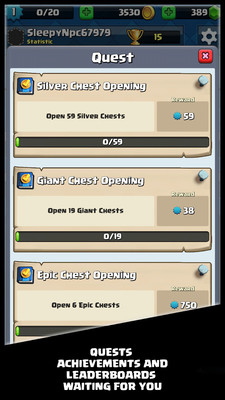 相信喜欢皇室战争的玩家们一定早已经体验过开箱内容并成功被开箱的乐趣吸引了吧?那么无法在皇室战争中感受无限开箱的乐趣是不是很遗憾!来皇室战争模拟器感受更直观、纯粹刺激的开箱玩法吧!玩法超级简单,任务也非常明确,就是让玩家体验能源源不断开箱的快感!游戏中的画面制作也是延续的皇室战争的风格和细节,毕竟游戏的目的就是让玩家们开皇室战争的箱!这么纯粹的游戏甚至没有什么广告来干扰你,所以不要犹豫赶紧加入吧!