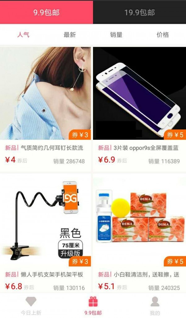 3,9块9包邮:每日精选千款超值折扣商品,全场9块9元全国包邮,物美价廉。