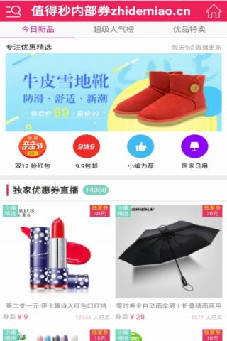 值得秒APP是一款网购省钱与福利软件,免费提供淘宝、天猫内部优惠券、隐藏优惠券!每天更新万款热销宝贝,纯人工筛选,限时限量特卖。