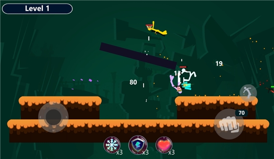 2、基于真实物理的作战系统,只有攻击、跳跃以及左右方向键,操作比较简单,不需刻意的瞄准,无脑射击就行。