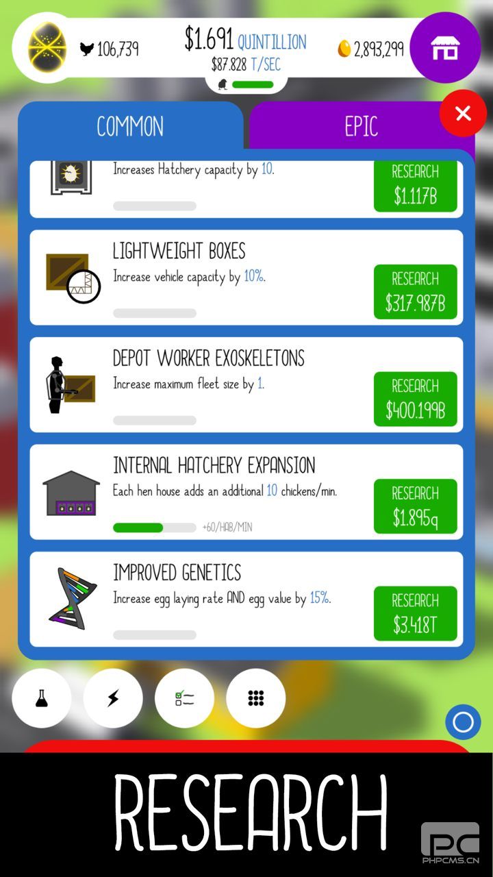 在不久的将来,宇宙的秘密将在鸡蛋被解锁。你已经决定要在淘金和销售尽可能多的鸡蛋,你可以。孵出小鸡来,建鸡舍,聘请司机,和佣金研究建立了世界上最先进的鸡蛋农场。