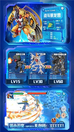 玩家们能够在游戏里面随心所欲选择自己的数码兽进化的方向,不管是丧失暴龙兽还是黑暗钢铁暴龙兽,只要你想得到,你就能够让其按照自己的方向完成进化;