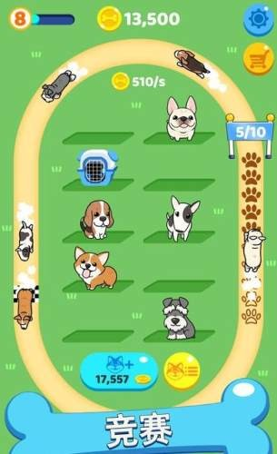 1、 游戏的玩法还有内容都十分简单,所有是一个老少咸宜的游戏,用户能够在游戏里面去收集各种不同的小狗来进行合并,然后合并成更多更高级的狗狗,并且带领它们参加比赛;