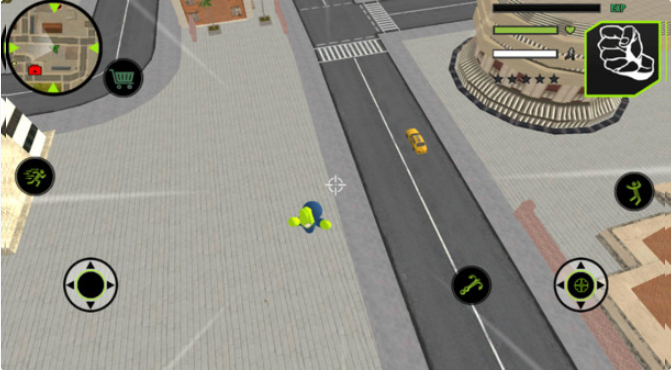 由于是触屏的游戏,所以左右各有一个虚拟摇杆,分别控制方向移动和视角移动,还有几个小的键分别是跑,跳以及攻击等。在游戏中的地图上会出现一些提示,比如在哪儿接受任务,哪儿是任务的目标所在地等等,玩家可以一边移动一边观察移动的位置。游戏中有着数量众多的各种火柴人英雄,你可以自由选择喜欢的火柴人队长,然后拿着你的大枪上街头疯狂扫射,打击罪犯哦。你也可以到商店去购买需要的东西,增强自己的战斗力。