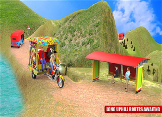 你一定没有尝试过驾驶三轮车吧,而且还是三轮出租车!一样的驾驶体验和操控,虽然是三轮车,但他和四轮的出租有着一样的作用!因为游戏设定在乡村,所以三轮车会更加方便。你会在山路上或者是路边的小亭子里招揽到客人,搭配游戏本身的欢快的背景音乐,有种十足的轻松休闲的游戏体验和氛围!驾驶的时候一定要掌握车辆的平衡,否则可能翻车哦!游戏没有特殊的规定,玩家们完全可以自由的发挥,想载客就载客,不像载客你甚至可以用三轮车来表演漂移技巧!