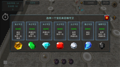 不知道来自于哪个未知世界的入侵者对我们的法提城发起了进攻,因此为了能够抵抗所有的入侵者,人们需要在游戏当中去建造城墙还有守卫底座,玩家们通过召唤7种不同的守卫来对敌人发起攻击,守卫的属性分别是金、木、水、火、土暗黑还有雷,根据对面的阵容来进行排兵布阵,我们给玩家们提供了5张不同的地图,首先前两张用户是能够自由免费试玩的,如果你体验完前两个地图之后,你可以花6元解锁之后的地图。