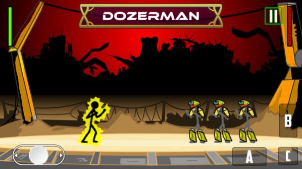 2、设置多个技能按钮,街机战斗风格,展现火柴人保护城市的决心。