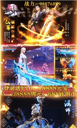 1,登录送V10,18888绑元,38888绑元,688W银两!