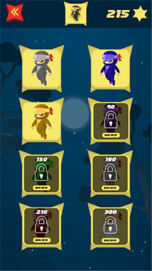 游戏的风格是非常可爱和充满童趣的卡通画面,非常清晰明了,里面的每一个忍者人物形象都是十分的Q萌可爱的,玩法也不复杂,非常短的时间就能够上手这个游戏了,你需要做的就是要让自己控制的忍者能够往更高的地方进行跳跃,这就有点像竖直版的跑酷游戏了。