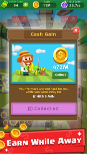 玩家在这场游戏中需要不断经营管理属于你自己的农场,整个游戏过程十分有趣,将嗲给你前所未有的游戏魅力。在这款游戏中,玩家可以不断进行收获。与此同时,你需要更多的榜首帮助你的工作,甚至让游戏中的员工帮助你更好地进行创造。即便你在游戏中不断获得各种各样的游戏资源,你也需要不断地进行发展。游戏中离线也可以给你带来收益,快来尝试一下吧。你也可以成为富翁的。