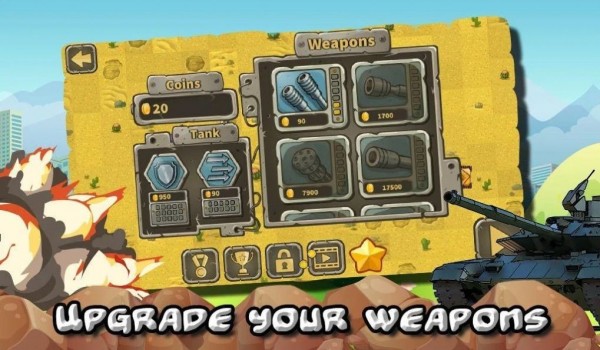 1.在TankToonq版游戏中搜集钱币,以升級重型坦克情况并在对战游戏中选购和改善高級武器装备。