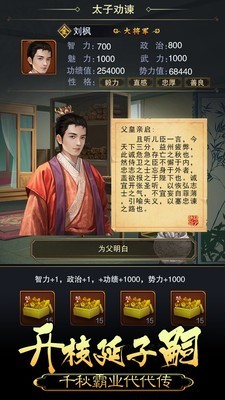 皇帝养成计中文汉化版是一款真正仿真模拟皇帝的手机游戏,在游戏里面你做为当朝皇上,从后宮到朝廷所有真正重现了作为皇上的平时,你能有三宫六院还可以御驾亲征微服私巡,仿真模拟养成游戏,游戏玩法类似皇上培养计划,百度收录不绝的重臣佳人,挑戰无尽的战斗,以皇帝第一视角主导线的对策养成手游,游戏玩家能够结合探寻、劝谏、奏折等趣味性游戏玩法,随意选择文臣、将领、嫔妃,根据工程项目、经济发展、任职、招兵等作用提高综合国力,令小伙伴们事必躬亲解决朝廷、塑造大臣、称霸世界,唯美意境实景拍摄,陪你印证盛世王朝!