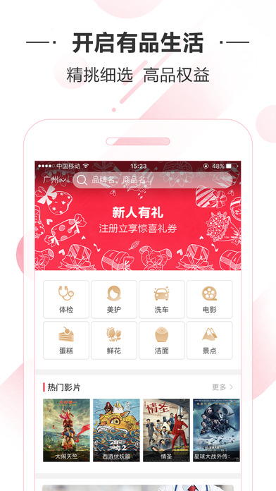 - 特色服务美护:尊享奢宠美容SPA服务,让美容成为享受;电影:最新电影资讯,在线选座轻松购票;景点门票:境外门票快捷预订,出行优惠轻松享;洗车:支持全国66座城市、10000多家门店的洗车服务,方便车生活。