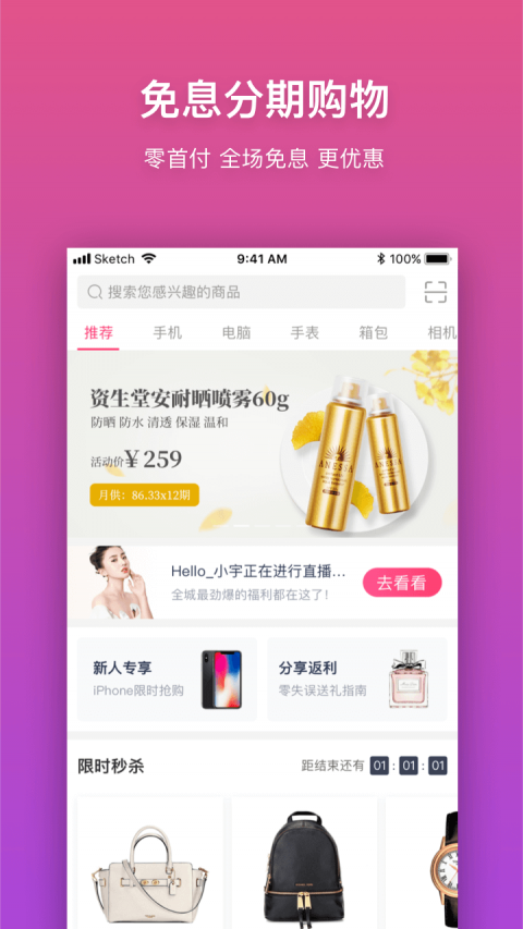 桔子分期精选是一家致力于服务更多年轻人的分期购物商城,为22-50岁的用户,尤其是女性用户,提供轻奢箱包、3C数码、手表、品牌服装鞋帽、品牌化妆品等消费性商品的分期消费服务,为更多人提供更好的消费金融解决方案。