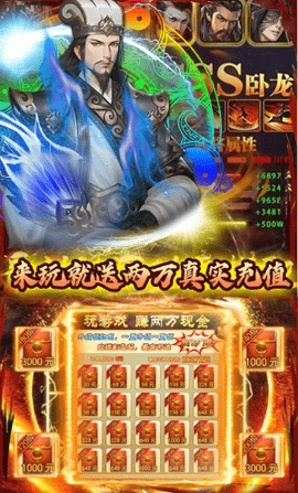 1、全新版本来袭!更多武将,更多福利!上线送满级VIP,十八万元宝,一千万铜钱!