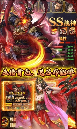 4、充值比例1:1000,首冲最高5倍,送吕布、貂蝉、方天画戟,枭雄美人配神器,开启无双三国!