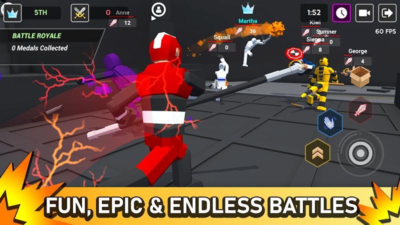 通过无尽有趣的物理模拟,在有趣的战场上粉碎并与对手战斗。您可以逐步升级,继续战斗,解锁新内容,玩布娃娃物理游戏以及通过多种游戏模式做更多的事情。