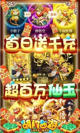 1.充值比例1:2000!!所有档位首次购买更是能获得多倍仙玉!上线赠送无门槛充值礼包(内含超1200元金额的充值卡)!总获得超百万仙玉!!真真正正的福利!首充送群攻神宠孙大圣!!!次日SSSSR战神蚩尤!!领完可升至3星!