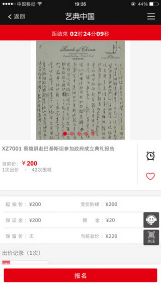 艺典中国是2012年由拍卖界、收藏界、互联网界、时尚圈、地产界等各界领军者共同创办的以艺术品为主体的高品质综合性交易平台,现已成熟运营网拍、同步拍两大业务链,私洽、商场、市集版块正在逐步推出。业务涉及中国书画、瓷器珍玩、当代艺术、珠宝翡翠等门类,目前已拥有网络注册用户40余万人,交易用户10万+,成交额逾10亿元。凭借专业的业务、良好的服务精神、先进的技术模式,艺典中国现已成为一个专业的艺术品电商平台。