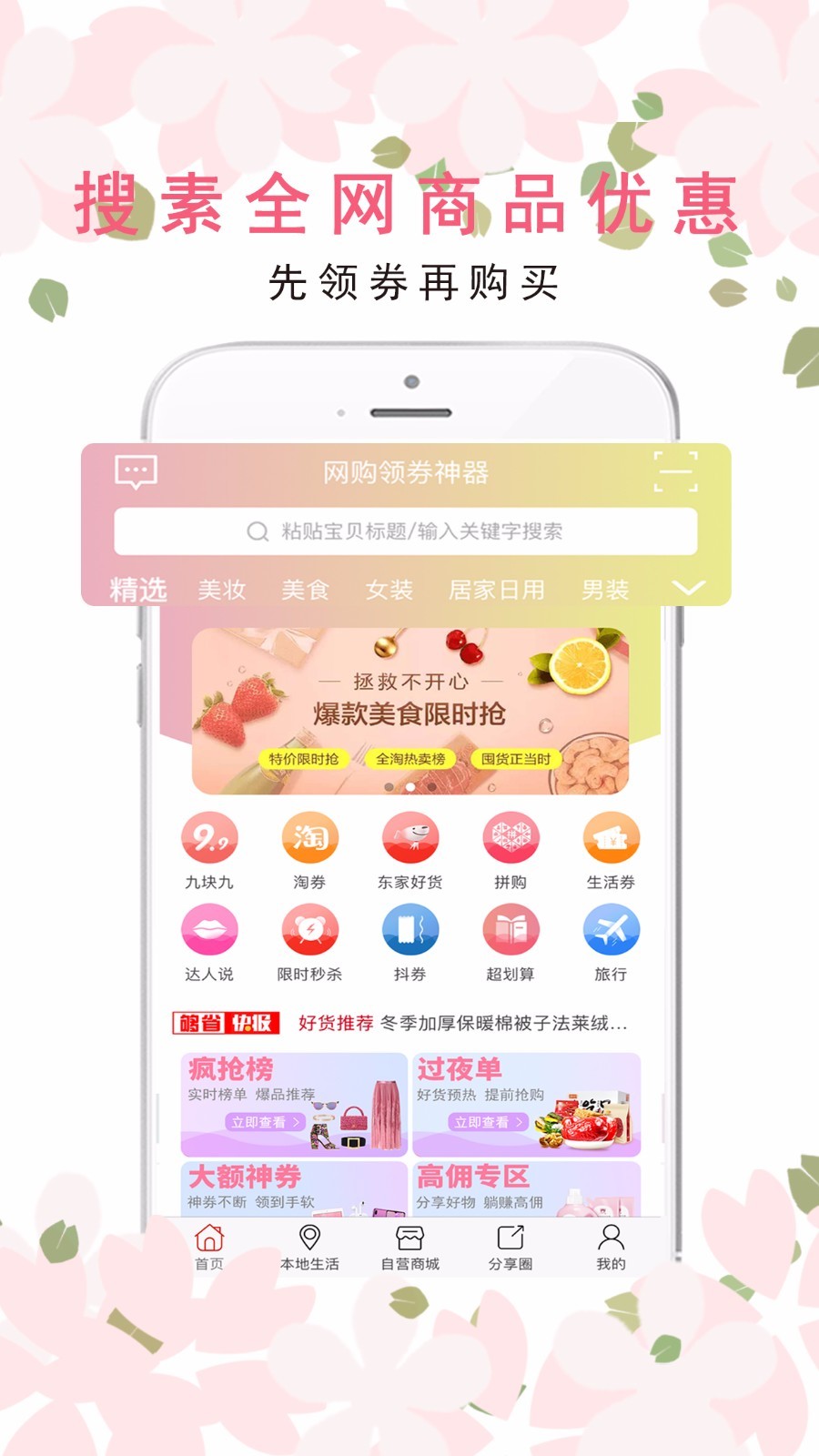 一个专注于购物领券,网购省钱的APP用户可以轻松领取隐藏大额优惠券淘到自己喜欢的商品分享商品,轻松推广,高额佣金等你来拿9块9包邮:精选商品,超值低价,包邮