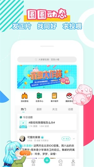 在圈圈你可以发布和观看动漫资讯/cos正片/展会/游戏/视频/音乐等日常等动态,还可精准学习各类二次元技能教程,扩列学习两不误!