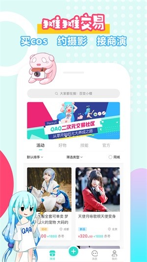QAQ是一款针对全国二次元爱好者的交易社区APP,更是萌新进阶大佬必备的二次元成长指南!在这里你可以完成找同好,找同好聊日常、看资讯学技能、买cos约摄影、发正片求商演,从零开始的大大养成之路,就在QAQ。