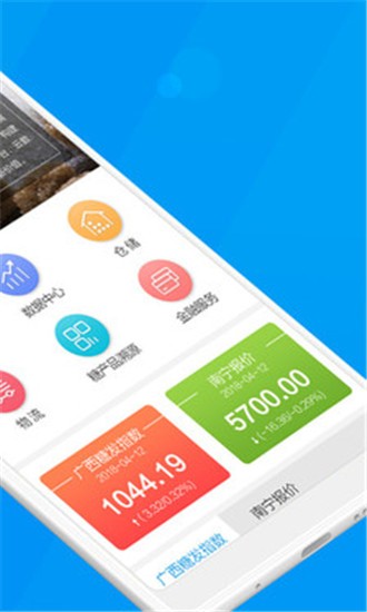 这里首页有报价查询、数据中心、仓储、物流、糖产品朔源、金融服务等功能;