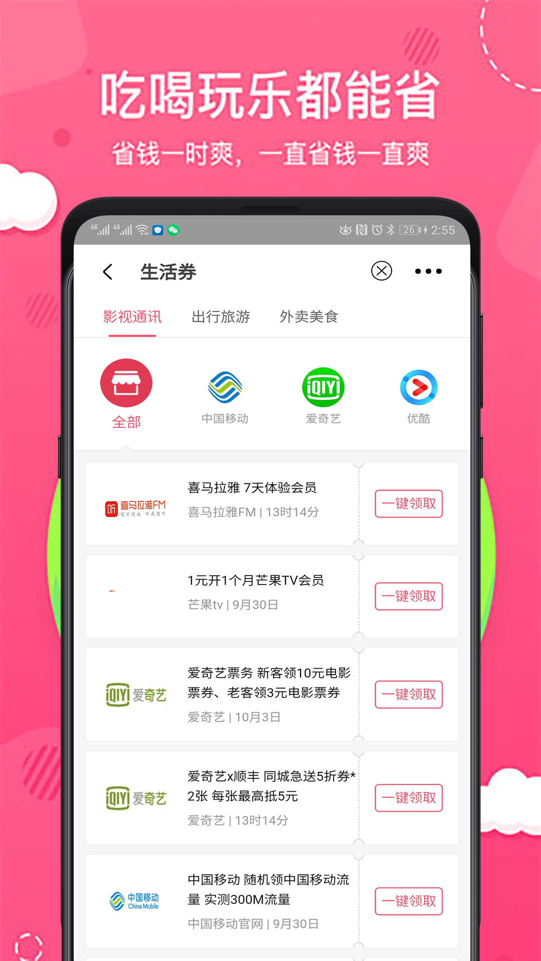 海量大额优惠券让你领到手软,分享优惠让你全年无休省钱。真正让你实现少花钱,多生钱![功能亮点]优惠券:淘宝大额优惠券,优惠到你想不到免单福利:新人可享受免单福利,0元即可购买心仪商品。极速提现:一元提现,闪电到账,安全靠谱!
