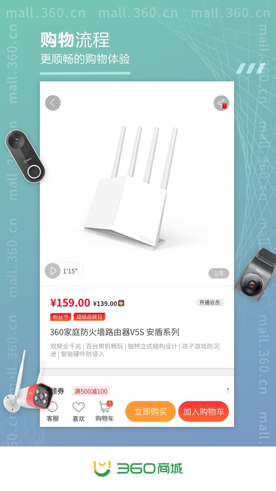 360商城是360公司旗下的销售网站,囊括360手机、360摄像机、360行车记录仪、360儿童手表、360门铃等智能硬件产品。